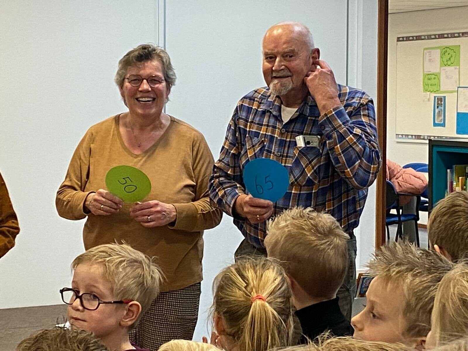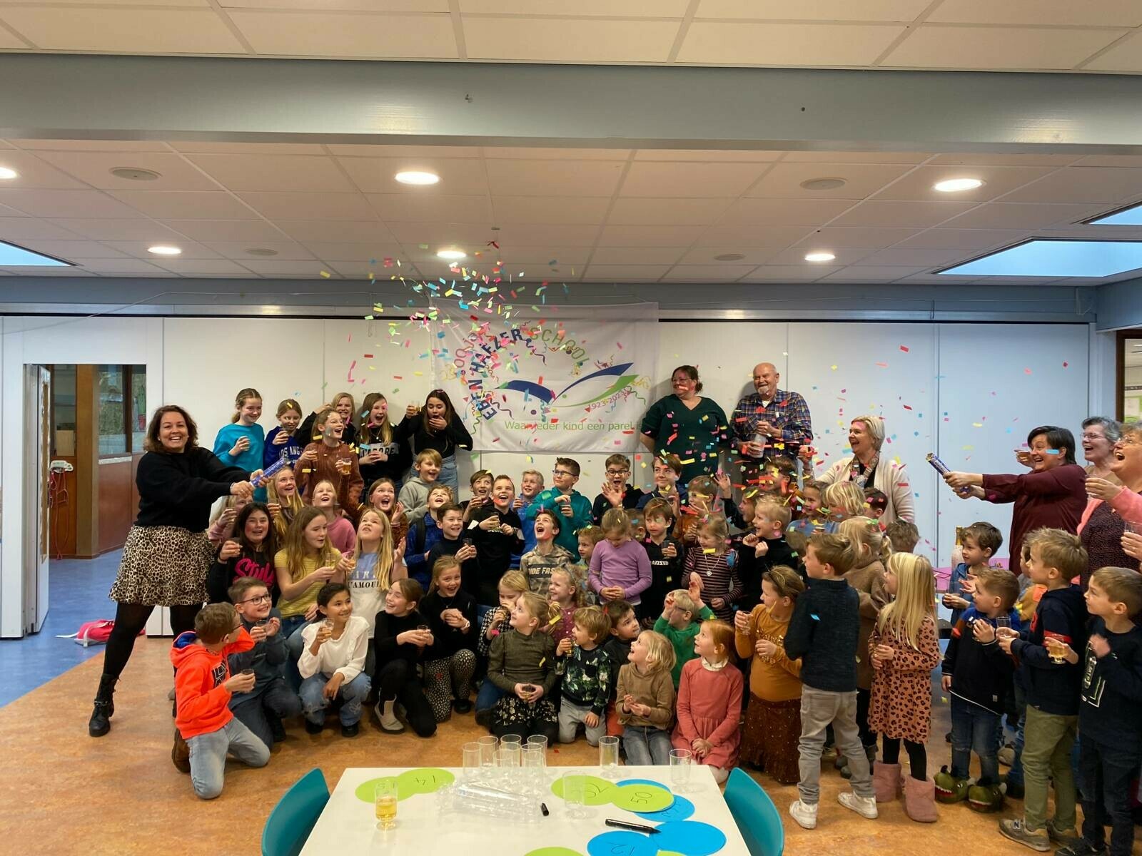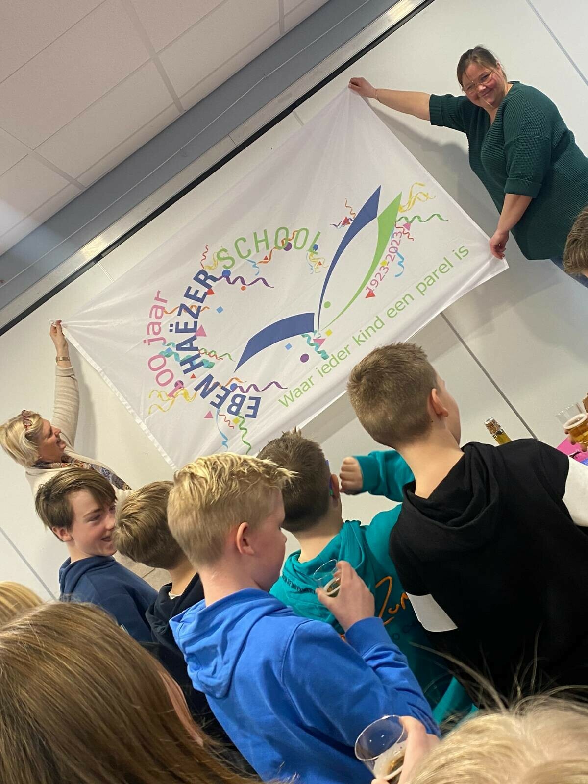 Vanmiddag hebben we met de kinderen feestelijk ons jubileum jaar geopend! Met een feestelijke toast, confetti en een tijdlijn! Op de tijdlijn stonden alle kinderen en volwassen die aanwezig waren op goede volgorde! Het lukte ons al van 1 jaar tot 65 jaar op de Eben Haëzer school.