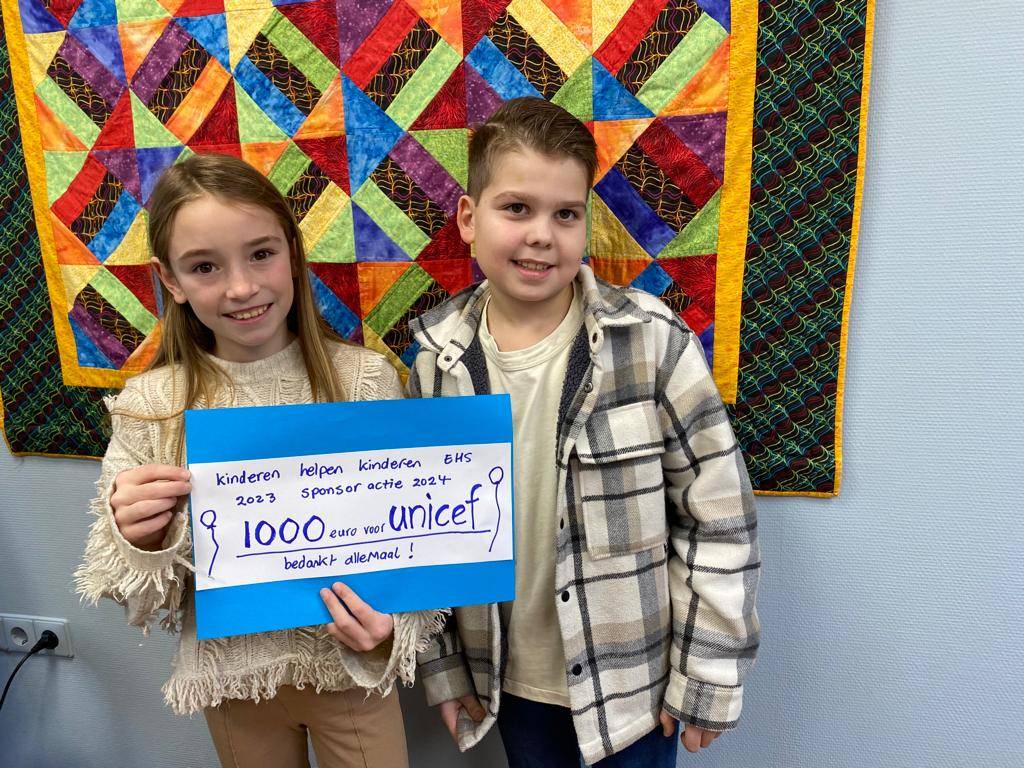 Het totale bedrag was €1000,-. Unicef zorgt voor lesmateriaal en dekens voor kinderen in de oorlog in het Midden-Oosten