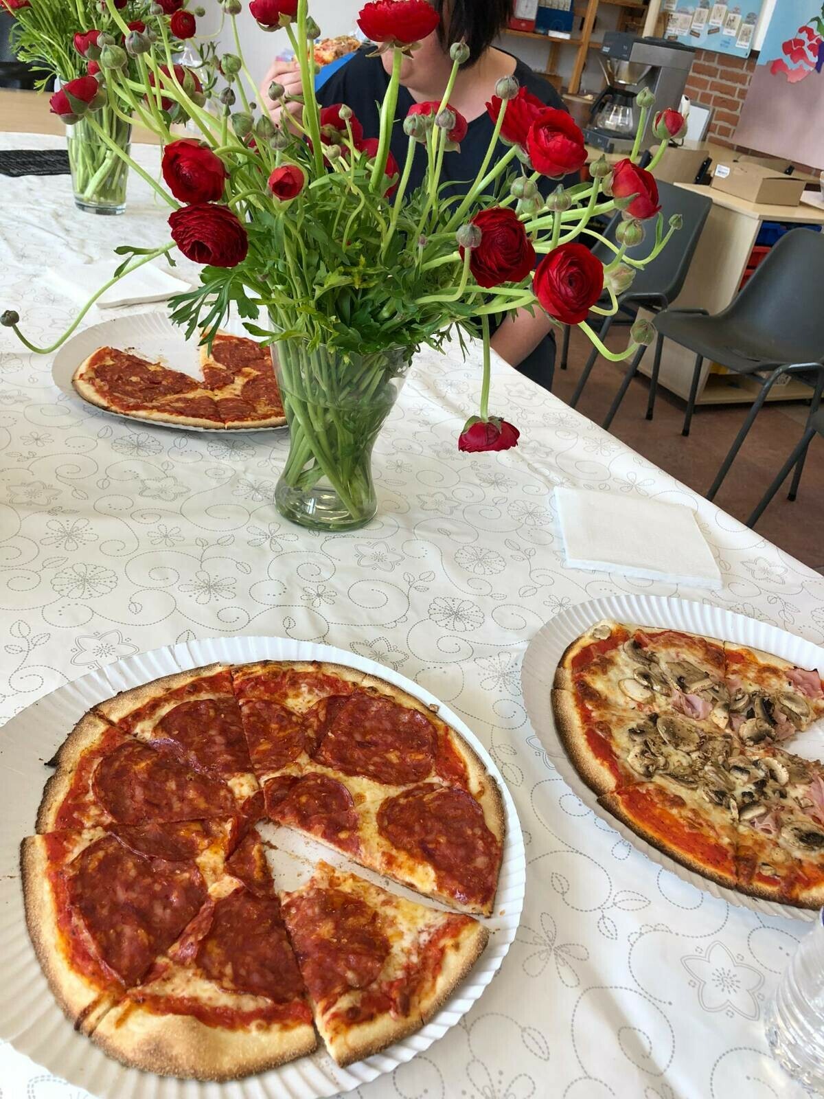 Ook de pizzabus ontbrak niet. Aan het eind van de dag was de voorstelling, waar famileden, vrienden en veel ouders bij aanwezig waren.