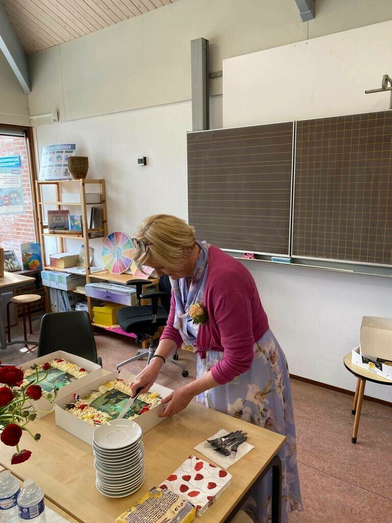 We vierden het jubileumfeest van juf Koopman. 25 jaar onderwijs, waarvan 121/2 jaar directeur van de Eben-Haëzerschool.